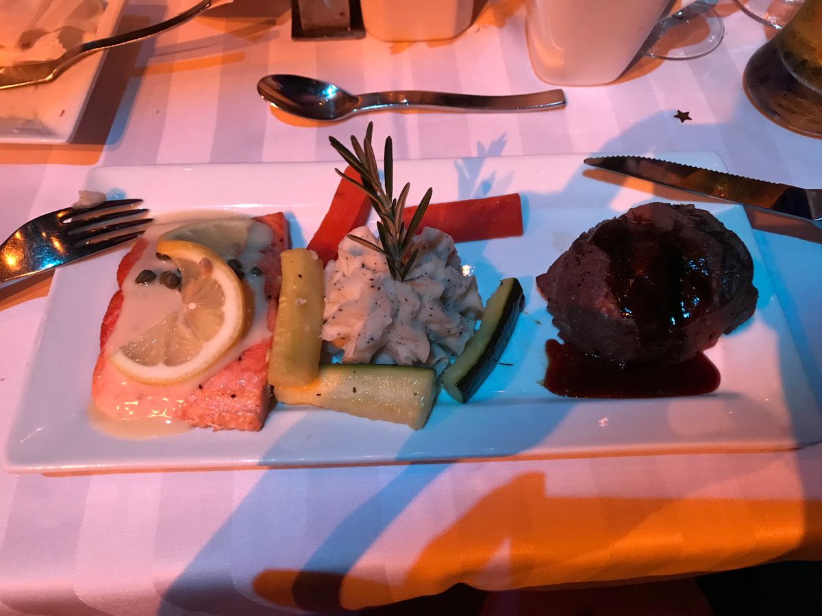 食事前のカクテル、おつまみ、そしてメインの4コースディナーと完璧でした。他の方がたくさんお食事のこと投稿していますので書きませんがロブスター、ステーキ、サーモン、デザートとっても美味しく頂けました。