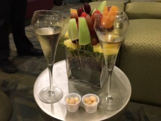 We then met Katy Perry (very hot) in the Green Room for champagne and snacks prior to the mean. It was a large First Class room where we spoke to other guests and relaxed with drinks before dinner.