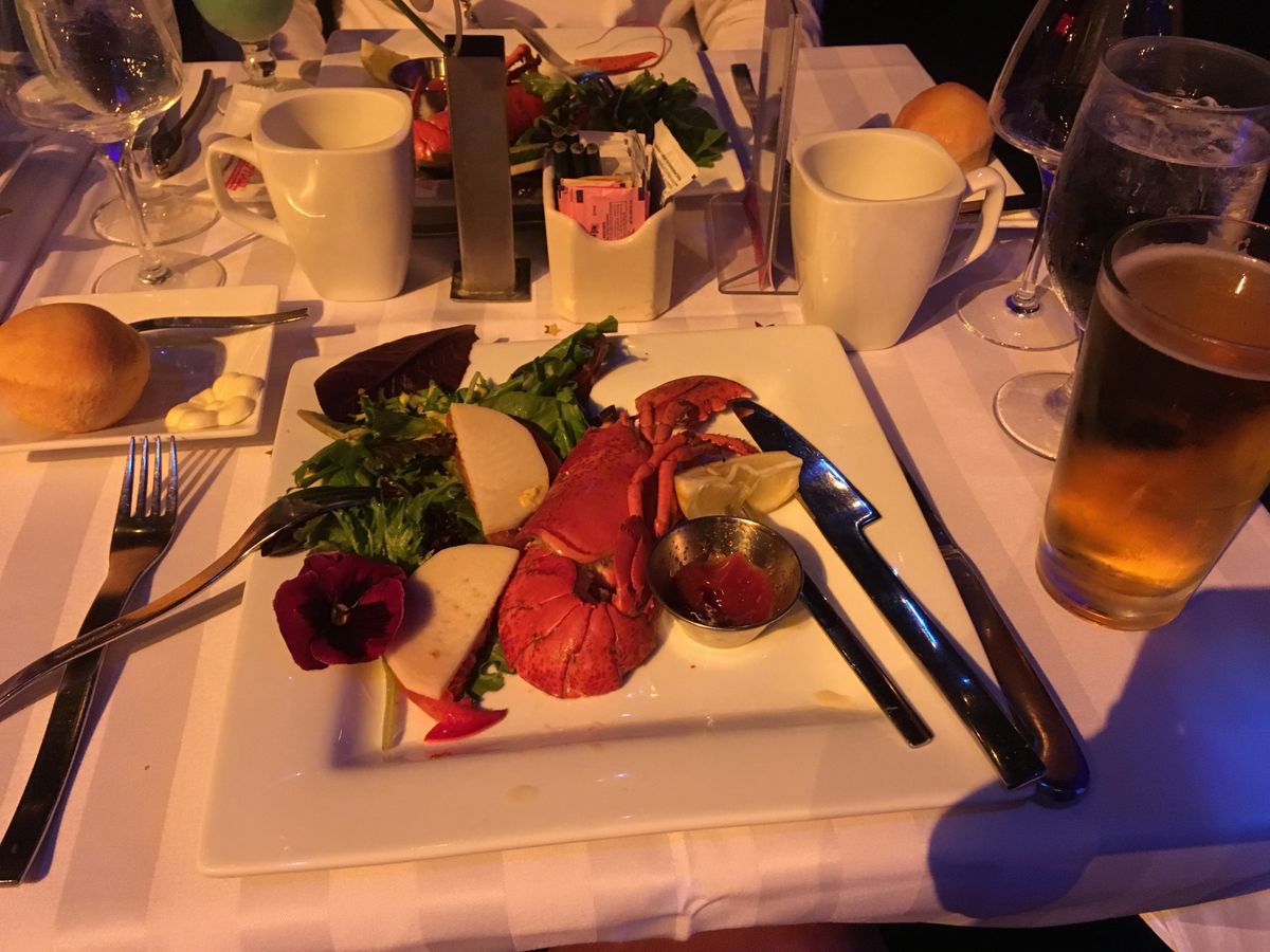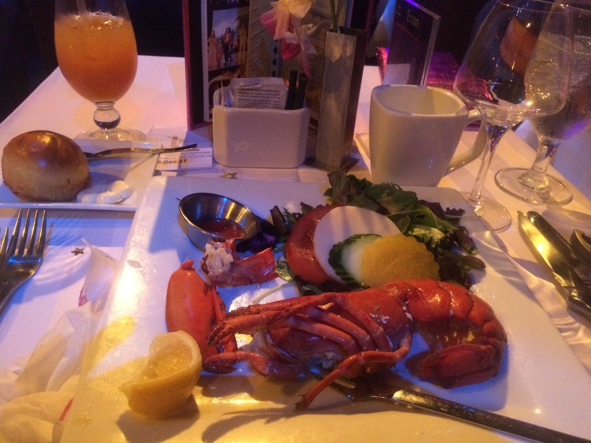 We then proceeded to have dinner and wine right in front of the stage. The lobster and steak dinner was super. Again wonderful service.