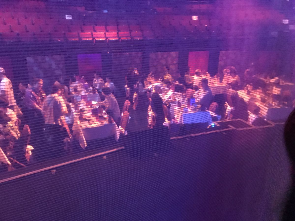 バックステージツアーを終えると、ディナーの開始です。ディナーはステージ目の前の席を案内され、まずはその場所に感動します。