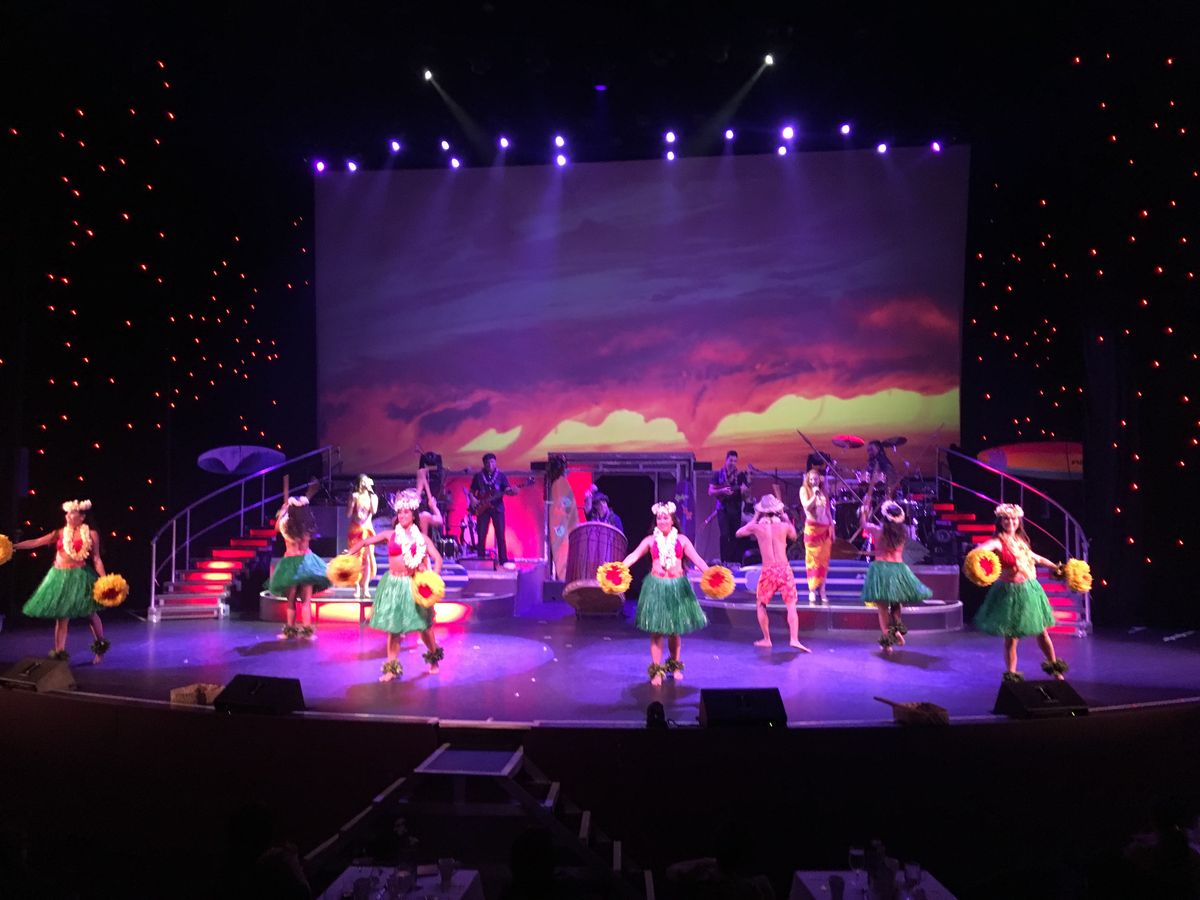 食事からダンサーまで同じスタッフさんでしたが、皆さんとても親切で、ショーはもちろん、ショーが始まるまでの時間も様々なハワイアンダンスで楽しませていただきました。