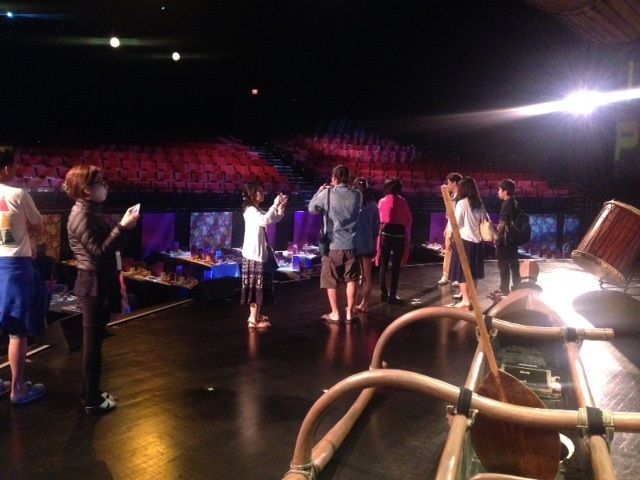 その後、海老蔵似のお兄さんに舞台裏を案内され、舞台衣装や装置、マイケルジャクソンの手袋など見せてもらったり、フラの小物(ポンポンなど)を触らせてもらったり…