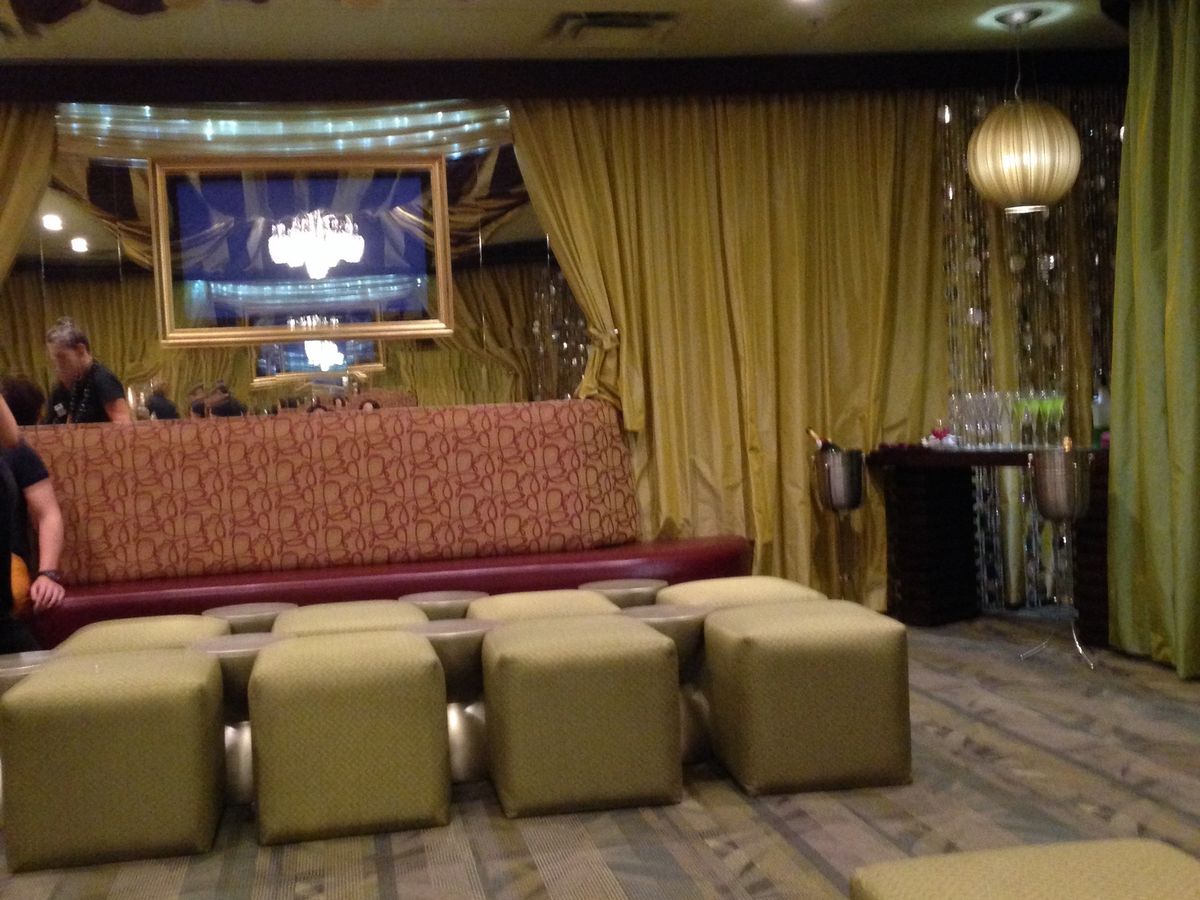 すると、そこにはレディーガガのそっくりさんが(*^^)v。。。。シャボン玉の衣装をまとってとても綺麗でした。ガガと写真撮影をした後、3人のウェイターさんからウェルカムドリンク、オードブル、フルーツ盛り合わせを進められ、豪華なソファーで乾杯!