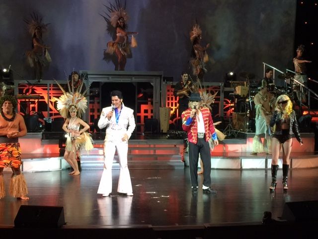 席は、舞台最前列のど真ん中で、エルビス、ガガ様、マイケル・・・その合間のフラやファイアーダンスなど、しっかり見られ、あっという間の時間でした。