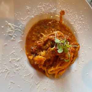 コースの中のパスタがとてもおいしかった。また食べたいと思います。全体的にボリュームがありお肉もとても肉厚でした。オプションでケーキを追加しましたがとても美味しかったです。