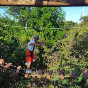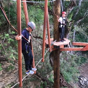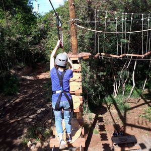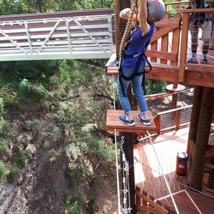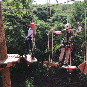 最後のステージでバンジージャンプのようなものがあったのですが、それだけはできませんでしたが、命綱を係の人がロープに繋いでくれて、スイングして地面に何とか着地しました。