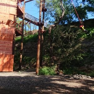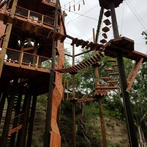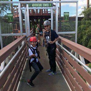 アドベンチャータワーは童心に帰って楽しめました。ただ、それだけでは物足りないと感じるかもしれません。ジップラインをしているグループの声も聞こえてきて「自分達もやりたい」と思いました。バギーも…。体験コースでしたので、贅沢は言えませんがf(^^; もちろん命綱はありますが、とても足場が不安定なところを進んで行くアスレチックなため、高所恐怖症な方、足腰に自信のない方はちょっと厳しいかもしれません。私は次の日、じゃっかん筋肉痛になりました。また、命綱を自分で引っ掻けて進んで行くのですが、少し高めの位置に設置されているため、子供など身長の低い人もしんどいかも…。最後には低めのバンジー的なものをしました。ターザン気分を味わえましたが、高所恐怖症ではない私でも少し怖かったです。いつかバンジーに挑戦したいと思っている人なら、肩慣らしにいいかもです。