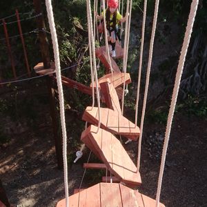 始める前までは7歳の娘に果たして出来るのか若干不安でしたが、大人の私が先に行き見本を示し、娘が後からやり、ロープで吊るされた板の足場を勇敢に渡って来る姿に逆にビックリで、インストラクターの方やスタッフの方も「good job!」と勇気づけてくれる中、見学していた妻だけが「怖い、無理、無理。出来た~すごい。」と一人盛り上がってました。