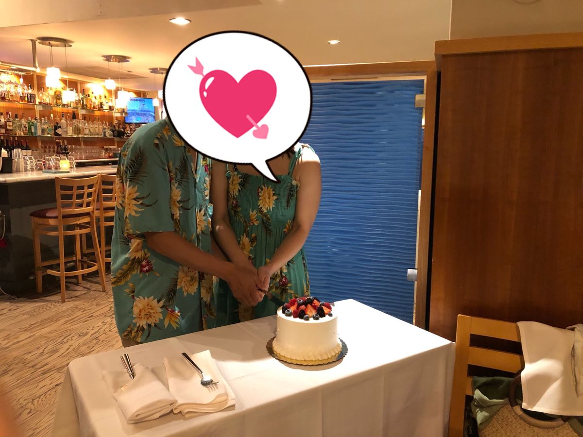 結果は大満足です。店員はローカルの人が多く日本語は少しだけしか通じませんが、料理開始前のケーキカット・ファーストバイトにも協力的でした。