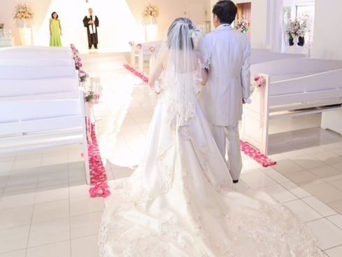 教会は閑静な住宅街の中にあり、普段は地元の人達が通うそうですが大変綺麗でした。私達は二人だけの式だったのでちょうど良い大きさで自然な雰囲気でした。式の進行は日本人のアテンドさんが付きフォローしてくれます。