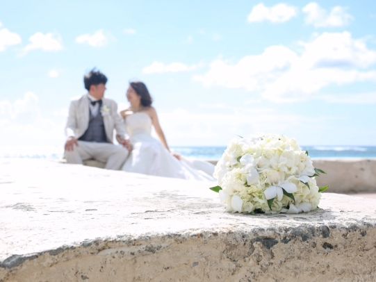 ビーチに移動したら他にも撮影しているカップルがたくさんいましたが、合間を縫いうまく撮ってくれます。ビーチ撮影も日本人のアテンドさんがフォローしてくれました。