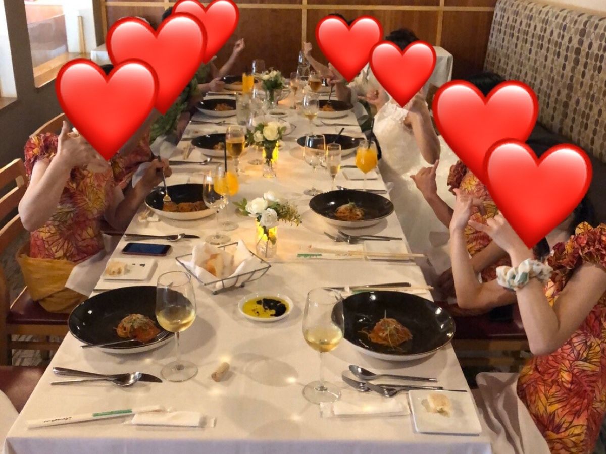 オアフでの結婚式を午前中に終え、サンセットフォトツアーとサンセットディナーで迷いましたが、参列した皆と良い思い出を作りたいと思い、食事会にしました。