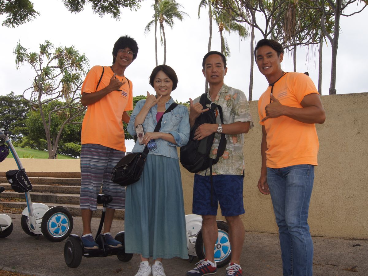 ホノルルに着いたときは雨が降っていたので、2時間後のセグウェイ・ツアーは、無理かと諦めているとだんだん晴天になり、予定通り参加することが出来ました。インストラクターの方々が、とても優しく教えてくれるし、慣れるまでは付きっ切りで導いてくれますので、安心して走らせることが出来ます。