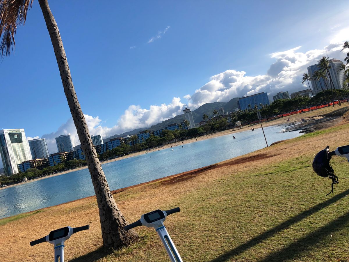 滞在先ホテル前のビーチとは違い、のどかなアラモアナビーチ沿いを風を受けながらナインボットミニで散策する時間は最高でした!