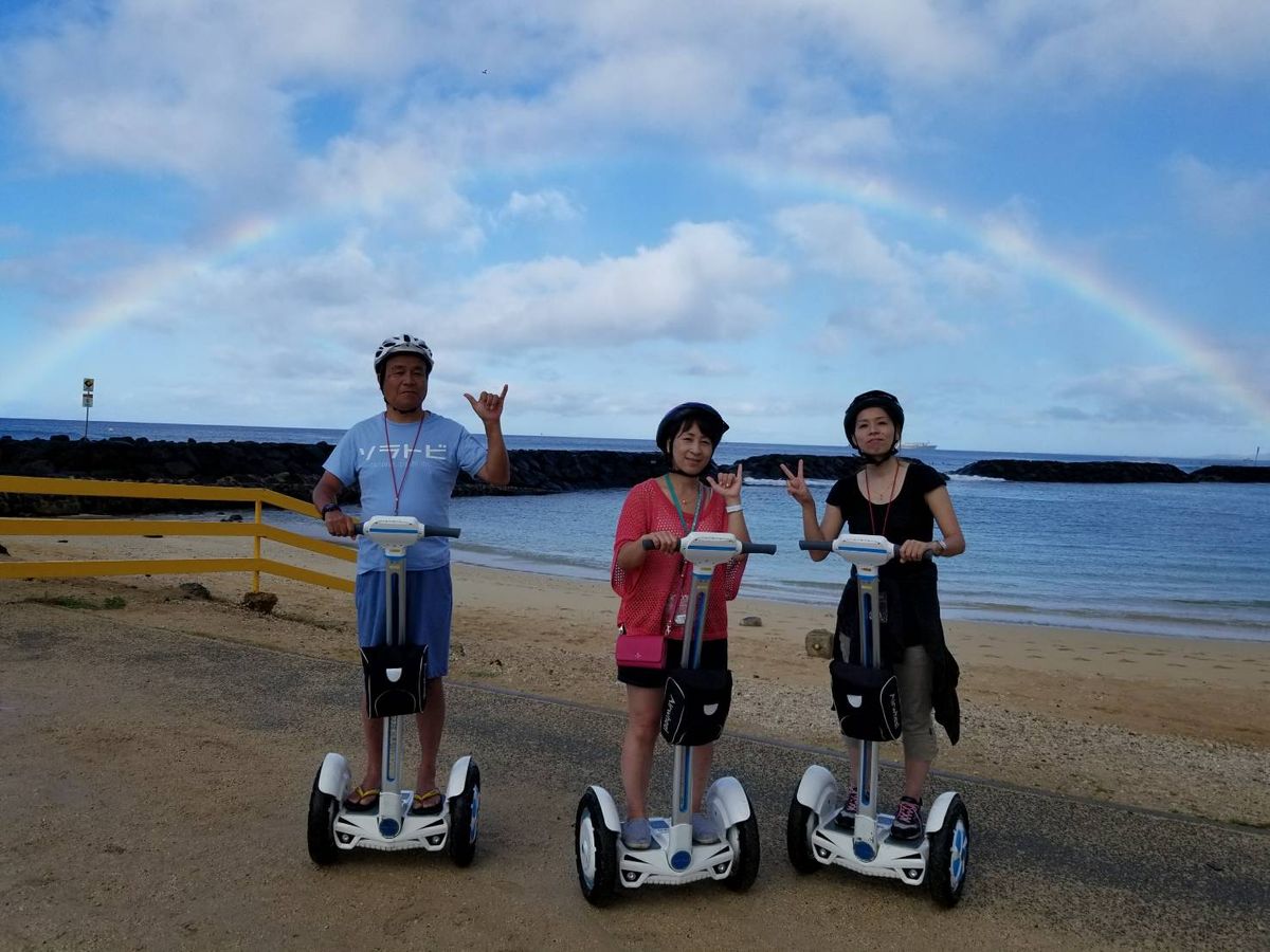 帰国前に、初めてのりました。最初はビビりまくって、道路に飛び出したらどうしょうと、かなり不安でしたが、インストラクターさんの決め細やかなアドバイスですぐになれました。海岸沿いで写真を撮ってもらったり、ちょうど虹もかかり、ムチャよかった、次も乗ります、乗ります(^ω^)。
