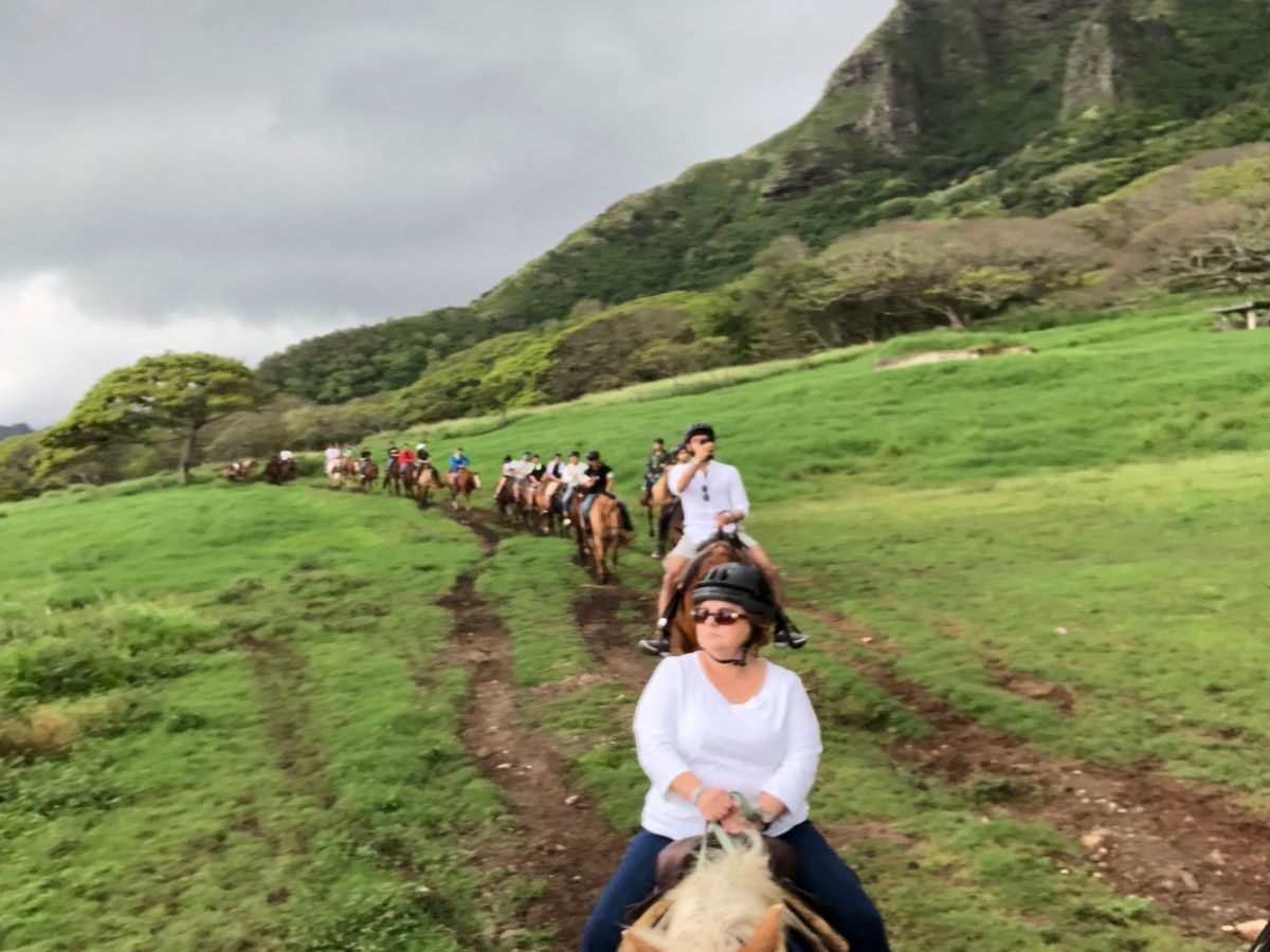 無事に代わりの馬が来て帰路に。。アクシデントがあったので1時間45分の乗馬になりました。彼女たちは英語で会話していたので大丈夫そうでしたがもし私たちのほうだったら言葉が通じないのでどうなっていたか少し心配になりましたが、スタッフは落ち着いて対応していたのでよくあることなのかもしれません。天気だけが残念でしたが乗馬自体はとても面白く、また天気が良い時に乗ってみたいと思いました。
