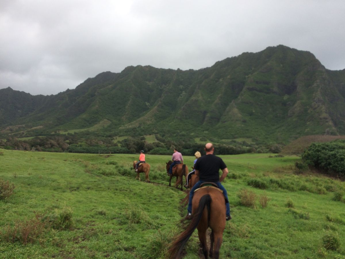 My family and I went to Gunstock Ranch for the 90 min ride. Our wrangler was Kate who was amazing! She took some time to aquaint us with our horses and determine our level of skill. Our horses were very well behaved, absolutely beautiful and healthy. Once we were all set, we headed on up the trail! Kate was very knowledgeable about the Ranch and Oahu history even though she had only been working there for 3 weeks. The ride was very peaceful and enjoyable. The view at the top was breathtaking, and Kate took a beautiful family photo for us at the top.