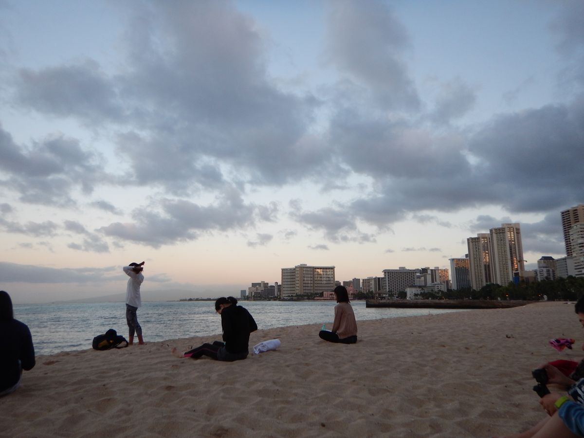 初めてハワイでビーチヨガを体験しました。当日の朝は動物園前に集合。散歩がてらにホテルから歩いて向かいました。6:45集合とありましたが、インストラクターの方が来たのが6:50をまわったところ。他の皆さんも少し不安げな表情をされてました^^; そこから砂浜に移動してビーチでヨガをしますが、晴れていたこともあり、青い空・青い海・波音を聞きながらの最高のシチュエーションでとっても気持ちよかったです!バスタオルは持参しますが、大部分は直接砂の上で行うので、服は上下とも砂まみれになります。笑 汚れてもいい服での参加と、参加後のシャワーは必須です。ヨガ自体は少しハード目ですが、たっぷり1時間超あり、リフレッシュできるのでお勧めです。