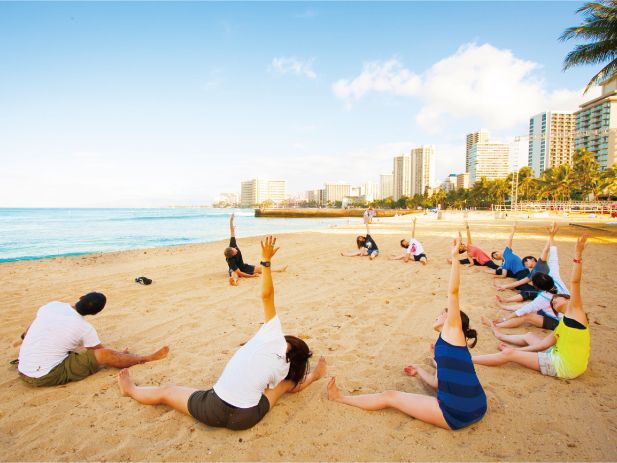 日本ではヨガの経験はありますが、ビーチヨガでの景色やハワイの砂浜での体験で