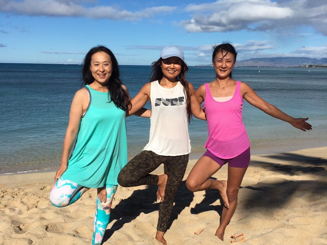 6度目のハワイです。ワイキキビーチは、散歩や移動の際通る場所ですが、テレビの映像や写真でも必ずと言っていい程出てくる場所ですよね。ハワイ=ワイキキみたいに☆彡そんな憧れの場所で人生初のヨガを体験できるなんて思っても見ませんでした。早朝の海、朝日の中で始まったヨガ教室!元気いっぱいで笑顔の素敵なインストラクターの掛け声に必死でついていきました。呼吸の事も分からず、ただただ言われた事を自分なりに挑戦しました。無理なポーズはそれなりに(笑)。きっと周りの方からは滑稽な姿だったでしょうね。でも、インストラクターは、自分の呼吸を大事にして無理をしないで・・・このままで良いですよーと優しく教えて頂きました。十数名の参加者の中で、慣れている方はやはり上手でした。初心者から上級?中級者を二時間と云う中でプログラムが組まれていましたが、誰もが満足され、貴重な時間を過ごせたのではないでしょうかぁ?だって、まずはロケーション。。何度も言いますが、あのワイキキビーチです。ホノルル動物園のほぼ真ん前でした。近くのパンケーキ屋さんでは朝食を求めて行列している中、朝日を浴びながらのヨガです。上半身裸でランニングしている人、仲良く手を繋いで散歩している老父婦、皆、現地のアメリカ人でしょうか?日本とは違った風景の中、そう、あのワイキキビーチでヨガ!テンションMaxでした。後半は、ついていけず皆の様子を見ていましたが、本当に気持ち良い時間を過ごせる事が出来ました。またハワイを訪れる時は、参加したいと思います。