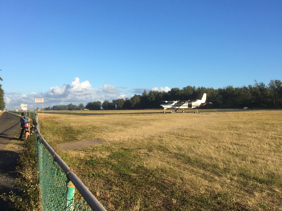 ハワイの天気は変わりやすい。雨だと思ったら晴れて虹がでた。上空4000からのダイブはスリル満点でハワイの美しい空と山と海の景色は本当に素晴らしい!そして、インストラクターがイケメン(色々な方がいますが)で素敵でした!風が強い日や酔いやすい方は対策が必要だと思います。
