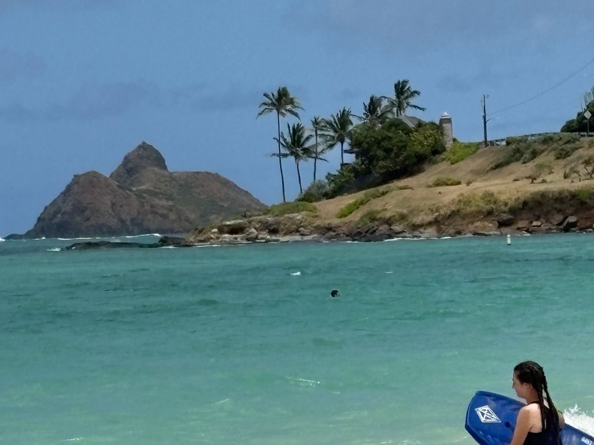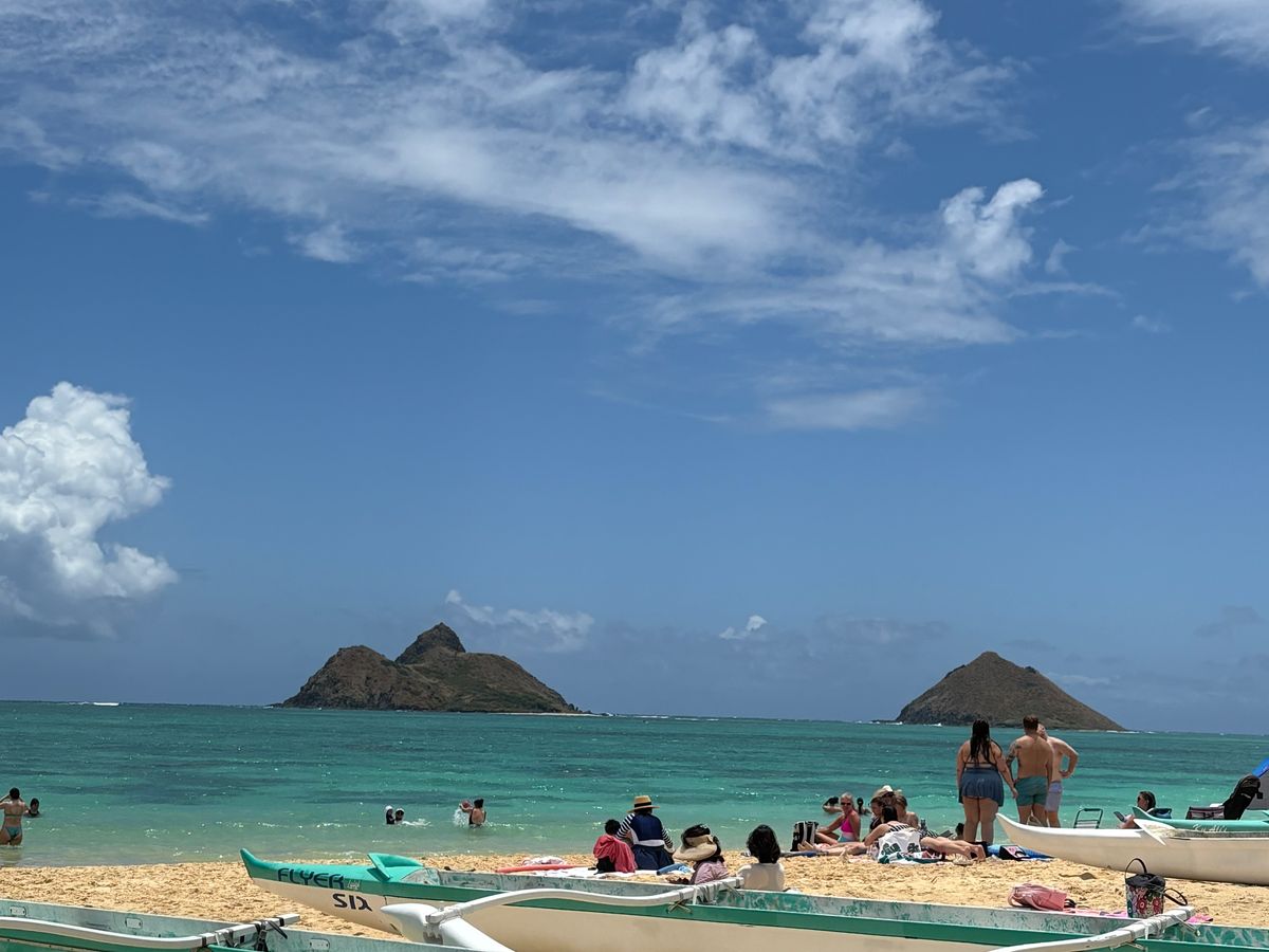 その電動自転車に乗って向かったのは、カイルアビーチパーク。白い砂浜、深い緑の木々、エメラルドグリーンの海、そして青い空、、、まさに今までに見たことのない絶景が広がっていました。
