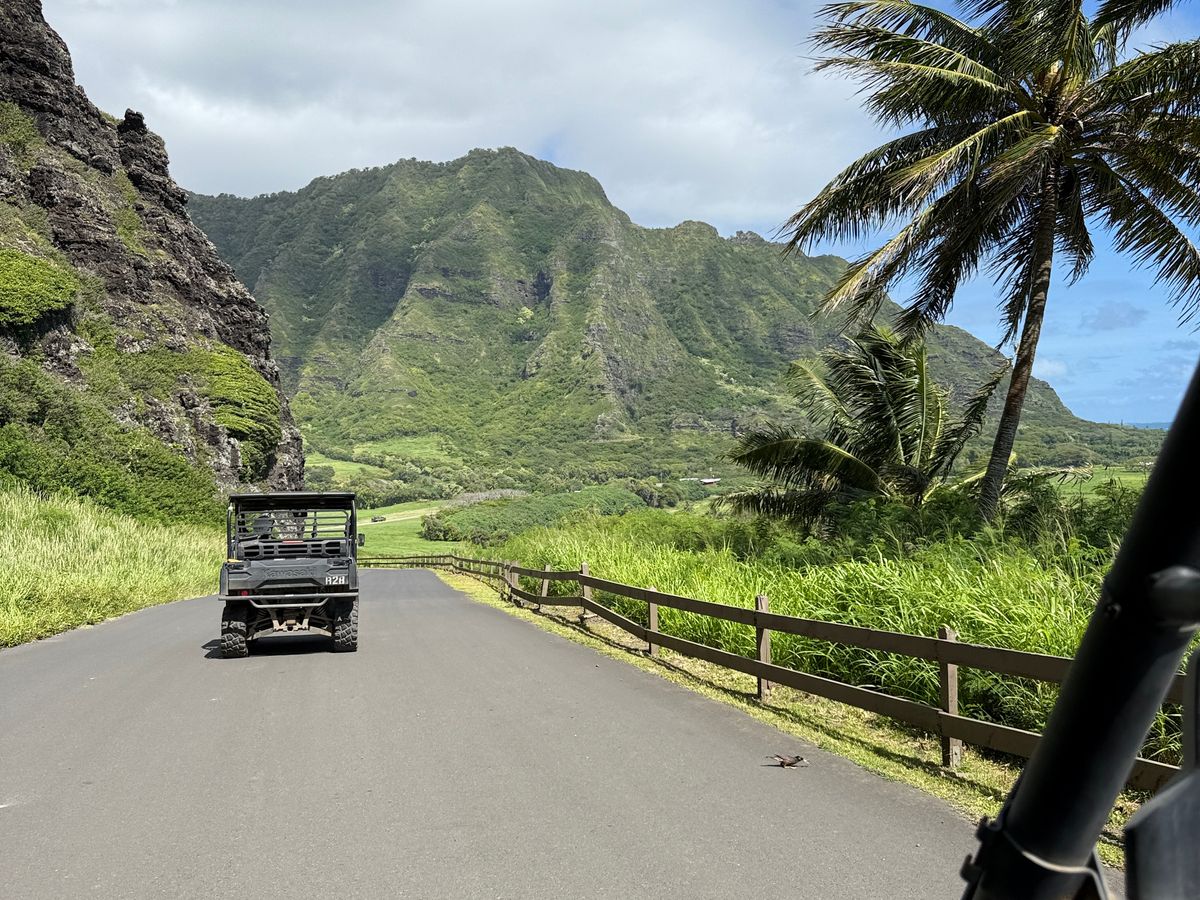今回のオアフはアクティブに挑もうということでクアロアランチの四輪バギーに乗ることにしました。若い方たちが多いようで、私たちのような60代は見かけませんでしたが、運転好きの主人は大満足でした。天候にも恵まれ景色も大変良かったです。ただ砂ぼこりをかぶってしまうので注意書きどおり汚れてもよい服装と、カバンは必ずロッカーを利用することをおすすめします。