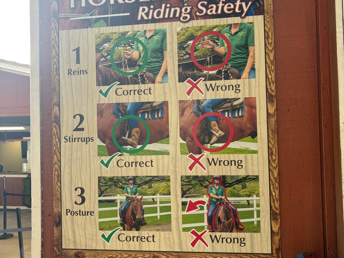 私が体格が大きく乗馬できるギリギリの体重だったので、軽量の時はヒヤヒヤしましたが、一番大きいお馬さんを割り当てていただいたので、問題なく体験できました。