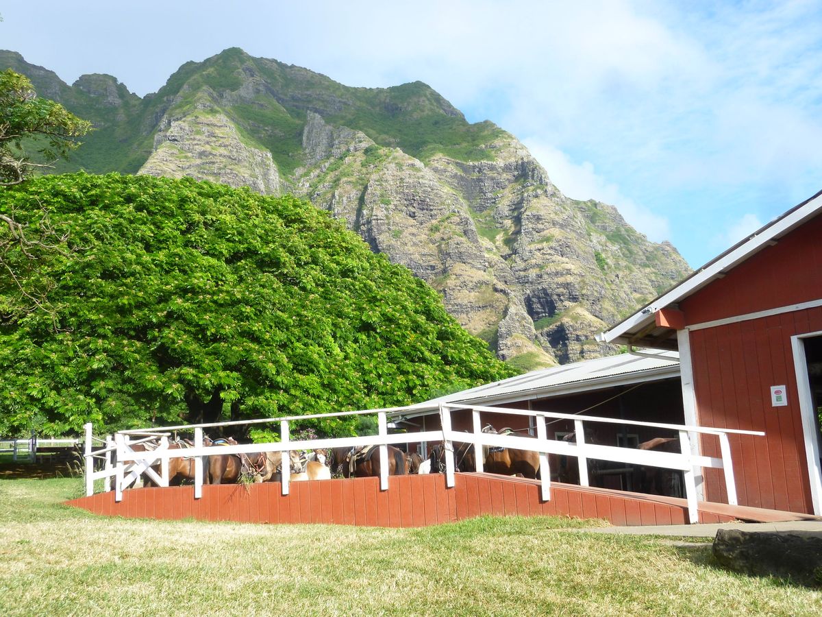 ハワイニは何度も来ていますが、初めてクラロア牧場を訪れました。メインは乗馬を楽しみたくてツアーに参加したのですが、ロケ地巡りでは色々な情報を楽しくガイドいただいたので、ハワイの知識が深まりました。また、ボートで海からチャイナマンズ ハットとクアロアの山を眺める景気も堪能でき、とても楽しい時間が過ごせました。一番の楽しみの乗馬もちょっと道草をする馬でしたが、おとなしく乗せてくれ、自然を満喫できるライドで楽しめました。