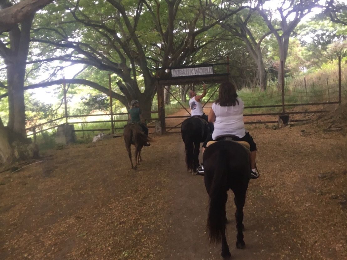 乗馬と映画ロケ地ツアー、ジープに乗ってジャングル探検。初乗馬にドキドキしましたがお利口さんだったので少しずつ余裕も出て景色を楽しみながら乗馬ができました。時間も長いのでたっぷりと乗馬を楽しめました!!