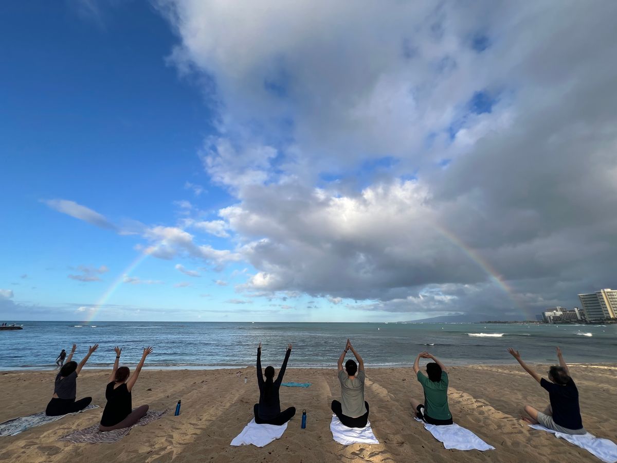 ハワイのビーチでのヨガ体験はとても貴重だと思うので、かなりおすすめです。服装もジャージ、ホテルのタオルで参加で気になりませんでしたので、かなり気軽に参加できます!