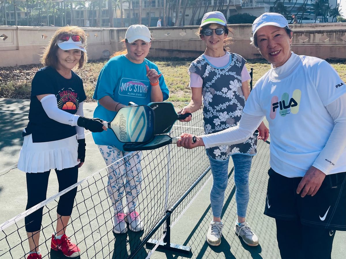 この度は、ご参加頂きまして誠に、ありがとうございました。コートのひび割れについては、ご不便をおかけし大変心苦しく思います。ピックルボールのゲームカウントは、覚えるまでに皆様少しお時間がかかりますので、焦らずにYouTubeなどで是非覚えていかれてください。2回目にもかかわらず、現役でテニスをされているので、ゲーム内容が素晴らしかったです。ハワイのローカルの人々とプレイできる日も近いと思います。またお会いできるのを楽しみにしております。Hiroko