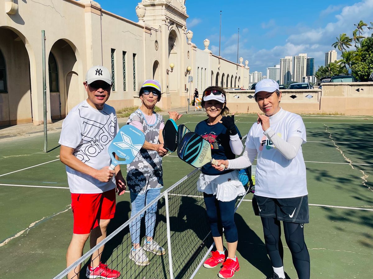 ハワイ、ワイキキビーチ近くでのピックルボールをご体験頂きまして、誠にありがとうございました。お2人とも初めてと思えない動きで、ラリーが続きましたね。今回お2人でしたので、ガッツリ90分休みなく出来ました!また、次回お会いできる日を楽しみにしております。Hiroko