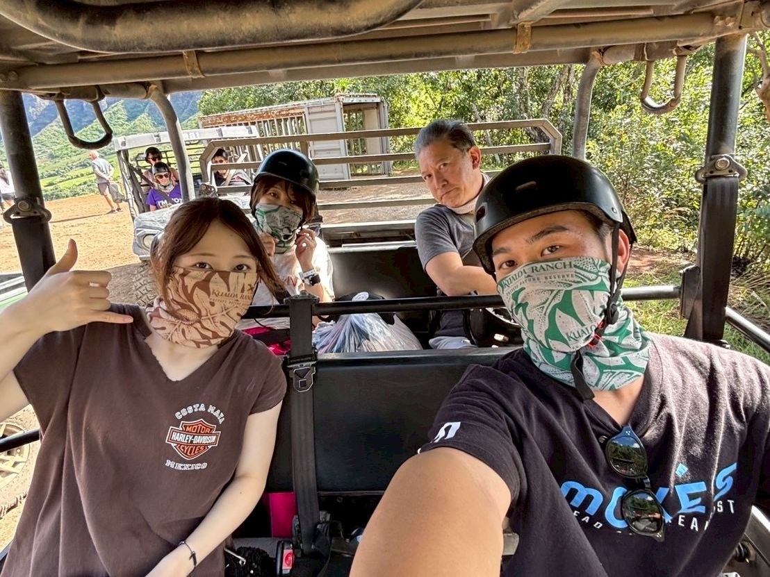 ハワイの大自然の中でバギーに乗り、風を感じ進みました。途中、写真タイムもあり自然に触れ思い出深い体験が出来ました。