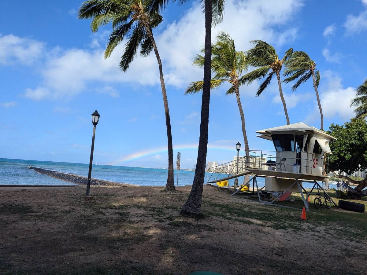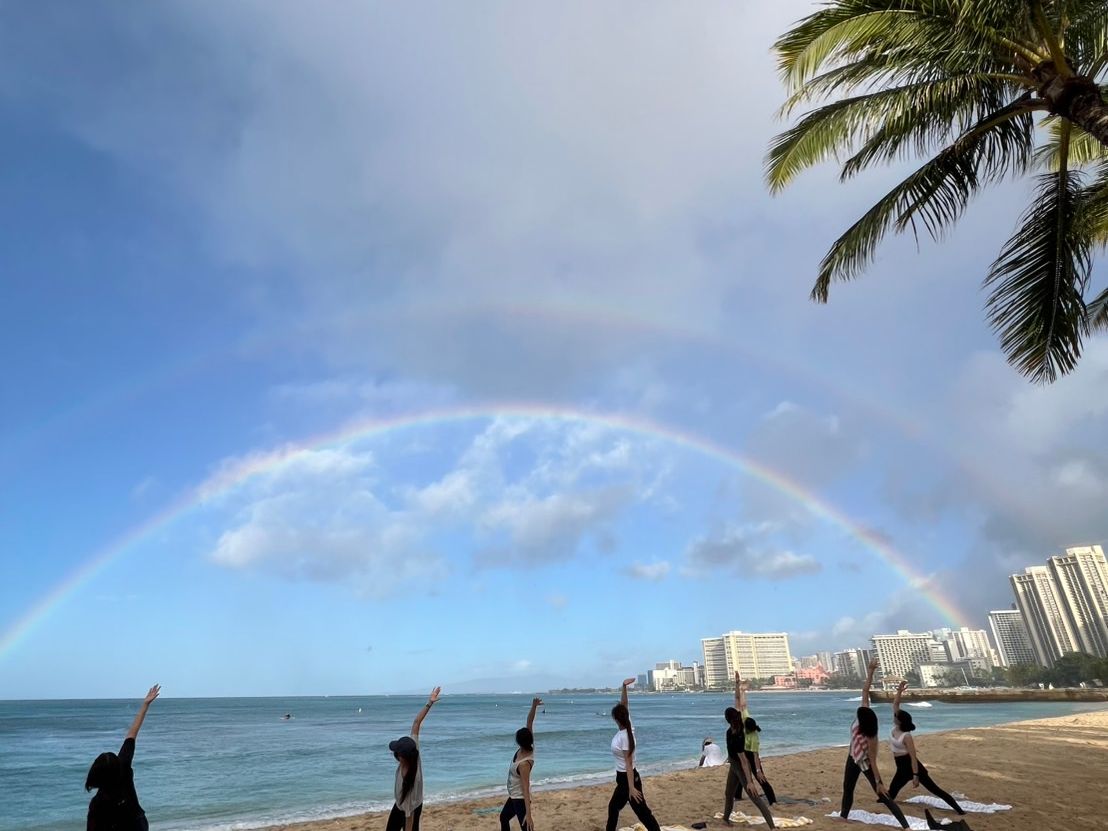 お天気イマイチなワイキキでしたが、ダブルレインボー見れて感激!波の音を聞きながらのヨガ癒されました!