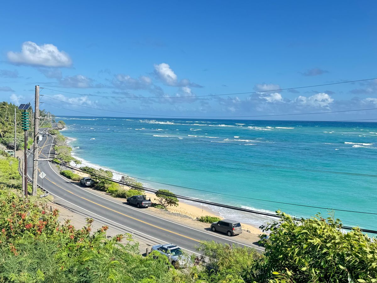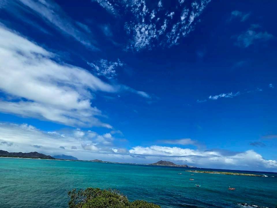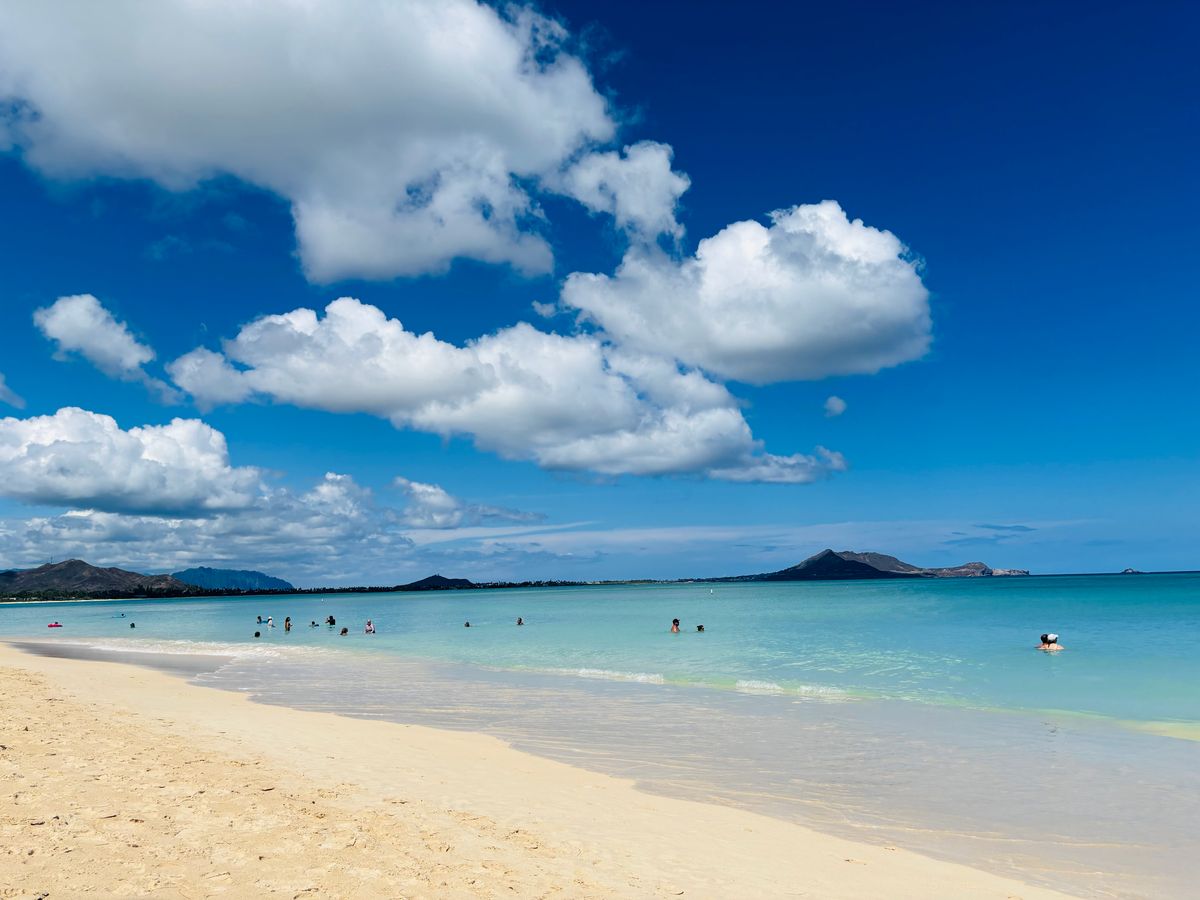 ビーチとブーツ&キモズはどちらも集合場所の中心部からは少し離れていますが、電動自転車で移動は楽々でした。ペダルをこがずとも左手のレバーでぐんぐん進みます。パンケーキはテイクアウトの注文もできましたが、我々はお店で食べて大満足でした。とろりとかかったマカダミアナッツクリームが絶品。3枚ペロリでした。カイルアとラニカイビーチでは時間を忘れてのんびり美しい海をながめて過ごしました。