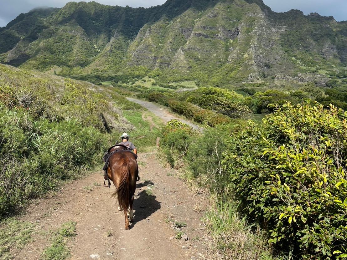 お馬さんが慣れているので、前の馬に続いて歩いてくれました。また、山も海も絶景でした。また、途中アテンダントスタッフが写真に撮ったくださり、最後にエアドロで写真を下さりました。また参加したいです。