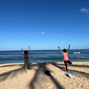 集合はホノルル動物園前でしたが そこから3分ほど歩き ワイキキビーチにバスタオルを引いてヨガをしました。ヨガは初体験でしたが、非常に気持ちいい1時間でした。熱くなる前ですし波の音や小鳥のさえずりを聞きながら、ストレッチのようなポーズを取り、心と体が喜んでました。今回は家族2人で参加しましたが、朝早くて少し躊躇しましたが、実際に朝早くだからこその気持ちよさですし、是非お勧めです。先生も日本人で言葉のストレスもないですし、むしろ 現地に住んでいる人だからこその雑談も楽しかったです。