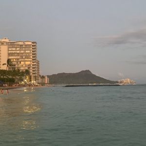 海、ダイヤモンドヘッドを背に