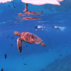 ちょうどカメが息継ぎで水面まで上がって来たタイミングに出会えたり、イルカの群れに出会えたり、タコに触ったり、すごく楽しい経験をさせてもらえました!!
