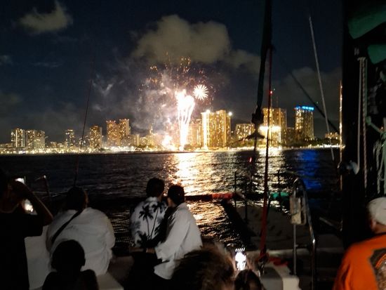 花火は5分で終了。その後、東(ダイアモンドヘッド方向)
