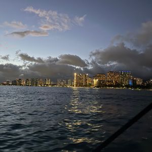 沖合から見るダイヤモンドヘッド、ワイキキビーチは最高です。また風も吹いてヨットとしての走りも最高、さらにイルカの並走、ウミガメにも遭遇し最高のクルージングでした。私がヨット経験者だと伝えるとキャプテンの計らいでウインチ作業、舵も握らせて貰い、最高の思い出になりました。キャプテン、クルーの皆さん有難うございました。初めて乗った同僚もヨットのクルージングに大満足しておりました。