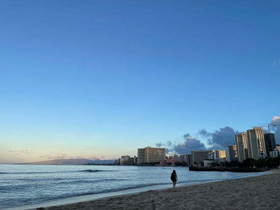 ハワイは19世紀末頃までは独立国で、ハワイ王朝の王族の保養地でしたが、1898年にアメリカの自治領となりました。 ワイキキ ビーチには本来砂浜がなく、1920年代から1930年代において、オアフ島の北部に位置するノースショアなどから白い砂を運んで造った人工の砂浜です。 波で砂が海に持っていかれてしまい、砂の減少が深刻化したため、2011年に砂を補給することで10メートル以上砂浜の幅を拡張して、観光名所としての美しい砂浜の景観を保っています。