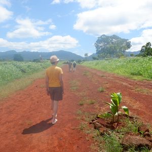 パイナップル畑の横を通るとき、パイナップルがどのように生っているか皆に見てもらいたいのに、まだ実が小さくてなかなかわからなかったのですが、少し大きめの実のところに差し掛かった時に、あっ、あれかという皆の反応を見て、とても満足そうなZENJIさんが微笑ましかったです。