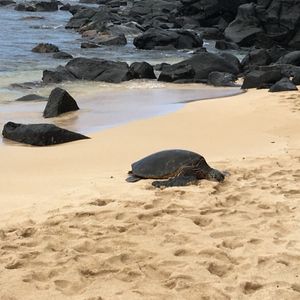 夕暮れのビーチもきれいだった・・・。ひっくり返ったウミガメにも出会えました!