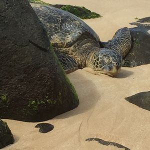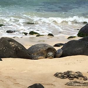 初めてのハワイでこのツアーに参加しました。当日は天気も良かったせいか、カイルアの海が言葉に表せないほど綺麗でした。また、ノースショアでは、ウミガメを同時に7匹も見ることができ、ガイドさんも驚いていました。