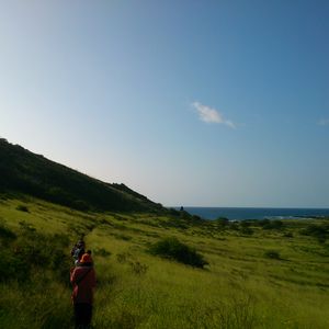 3歳と8歳の子供連れで参加させていただきました。申し込みの際、子供がいるのでラニカイの丘のトレッキングは心配でした。しかし、3歳の子は半分位は抱っこしましたが問題なく登ることが出来ました。ここからの景色は絶景でおすすめです。軽装で問題ないですが、スニーカーはあった方が良いと思います。B級グルメも最高でした。レンタカーを借りても自分たちだけでここまで満喫することは出来ませんし、ツアーの方も日本人で安心感がありますのでお勧めのツアーだと思います。また、ハワイに来た際は参加したいです。別のコースもあれば良いですね。
