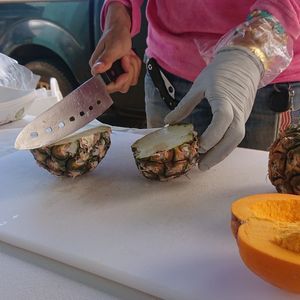 • 現場でカット、試食