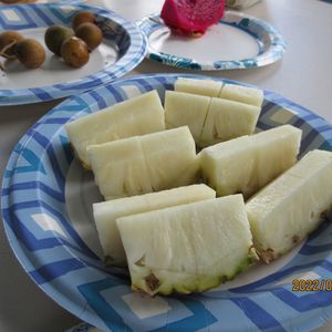 ホワイトパイナップルは「これが最後」と言われ、皆さん「美味しい」喜んでいましたが、以前丸ごと食べたことがあるので一切れだけ頂きました。