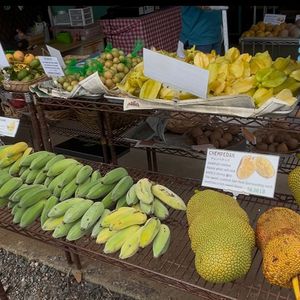 昨年の同時期に同じツアーに参加しました。時期をずらした方が違うフルーツが食べられるかと思っていたのですが、休みの都合で全く同時期の参加となりました。しかし違うフルーツばかり食べる結果となりました。今年の気候がそうさせたと説明を受けました。ラッキーでした。昨年の体験を踏まえ、保冷剤と保冷バッグを持参してフルーツを買って帰りました。翌朝からホテルでフルーツ三昧で贅沢をさせていただきました。特にアイスクリームバナナは、みずみずしくて絶品でした。あまりの美味しさに農園では写真を撮ることも忘れてしまいました。写真のフルーツは2日後のものです。他にもアボカドやリュウガンも買いました。また再来したいです。